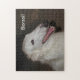 Este é um quebra-cabeça que caracteriza uma fotografia original de um Borzoi branco bonito com uma luz - fundo marrom.