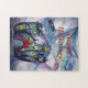A mão do castelo de Halloween pintou uma ilustração em um quebra-cabeça. Fácil de alterar ou adicionar texto personalizado. Feliz Dia das Bruxas!