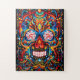 Quebra-cabeça de crânio de açúcar. Grandes quebra-cabeça coloridas de arte do crânio para toda a família.