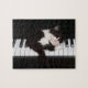Quebra-cabeça do jogo mostrado com um impressão da foto de um gatinho bonito no piano. Personalize este artigo ou compre-o como é. Armazene a imagem