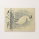 Este quebra-cabeça de aparência vintage apresenta uma representação de um pássaro alto e de pé.