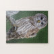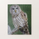 Retrato empoleirando-se da coruja barrada que olha a câmera. Esta coruja barrada em uma árvore de carvalho verde americano de texas fará um quebra-cabeça de serra de vaivém muito desafiante para resolver. Copyright Steven Holt/stockpix.com.