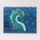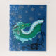 Retrato do perfil do dragão azul, verde e lacrimogênio com neve caindo por toda a parte. Rosa preto tribal.