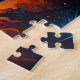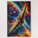 Uma nave estelar se liga aos pós-quedas como se dirige a uma estrela distante em uma galáxia de cores vivas nessa quebra-cabeça de quebra-cabeça do templo de ficção científica.