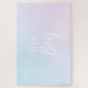 Metade é rosa claro, metade é azul-claro, as cores se misturam na área central onde há um texto de roteiro que revela o gênero do bebê.