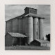 This black and white image captures a striking rural industrial scene, featuring towering rural grain silos and their weathered outbuildings. The monochrome style enhances the textures of aged concrete, corrugated metal, and overgrown grass, evoking a sense of quiet history and resilience in the Australian countryside. Atop the silos sits a central tower, likely housing machinery for grain handling and distribution. Flanking the silos are two smaller buildings with corrugated metal roofs, possibly used for storage or operational support. The surrounding landscape is open and grassy, dotted with a few trees, reinforcing the agricultural setting. This image blends rustic charm with industrial character, making it ideal for farmhouse décor lovers, rural landscape enthusiasts, and anyone who appreciates timeless agricultural architecture.