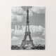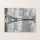 The iconic Eiffel Tower stands tall in Paris, captured in a black and white photograph.