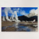 El Tatio, San Pedro de Atacama, Chile. El Tatio é um campo geyser localizado dentro das montanhas dos Andes do Chile norte a 4.320 metros acima do nível médio do mar. Seu nome vem da palavra quíchua para forno. Está entre os campos de geyser de mais alto nível do mundo. El Tatio tem mais de 80 geysers ativos, fazer-o o maior campo geyser do hemisfério sul e o terceiro maior do mundo. Seus gêiseres erupiram até uma altura média de cerca de 75 centímetros, com a maior erupção observada em torno de 6 metros.