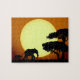 Esta ilustração mostra um elefante da mãe junto com seu elefante do bebê, andando através do savana africano durante o por do sol.
