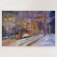 aquarela: um elétrico italiano corre sob a neve durante a noite