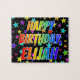 Este design de serra-de-vidro, divertido e vibrante, apresenta a mensagem "HAPPY BIRTHDAY, ELIJAH" com os personagens que têm um espectro colorido de arco-íris inspirado em um padrão de gradação, além de um incrível padrão de fundo de campo estelar. Um quebra-cabeça excitante como este pode ser usado para enviar uma mensagem de saudação de aniversário a alguém chamado Elijah. [~Z0000468]