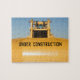 Este legal quebra-cabeça apresenta uma foto de um grande trator de buldôzer de construção com a mensagem personalizada "Em Construção". Mude o texto para fazer deste design! Fotografia criada pela fotógrafa Maria Jeffs, prêmio vencedora.