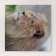 Na imagem, um leão macho se posiciona orgulhosamente contra um fundo leve. Seu homem majestoso armou seu rosto nobre, exuando força e autoridade. Aos seus pés está uma vibrante folha verde, simbolizando a harmonia entre o rei das bestas e o mundo natural