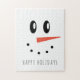 Passe o tempo durante as férias com este quebra-cabeça do Homem de Neve Engraçado. É uma simples design moderna com um rosto sorridente de boneco de neve em fundo branco. O texto personalizável é "feriados felizes" e você pode mudar para o que quiser clicando na opção personalizar modelo.