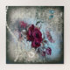 Linda, vintage, florais de rosa vermelha de jornal, apresentando um falso broche e colar de pérolas, gaiola de pássaros com arco para criar um luxo, extravagante, estilo chique.