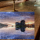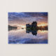 Um pôr do sol ouro, azul-roxo-roxo, gira em torno do picturesco Castelo Eilean Donan, nas Highlands Ocidentais da Escócia. A incrível luz se reflete nos lochs marinhos que cercam o Eilean Donan. Dois clãs escoceses aliados, as famílias MacRae e MacKenzie, viveram e defenderam esta localização na Escócia Ocidental a partir dos anos 1200. Originalmente, era propriedade dos chefes de clã MacKenzie, que alegadamente se estabeleceram até 1297. Agora pertence a um MacRae. Eilean Donan faz parte da Área Cênica Nacional Kintail, uma das 40 na Escócia. Eilean Donan foi completamente reconstruído entre 1919 e 1932 e é um dos locais mais fotografados do país. Uma versão maior deste quebra-cabeça está disponível. Prêmio ganhador de dominio público Foto cortesia de Syxaxis Photoographic, CC BY-SA 4.0 https://creativecommons.org/licenses/by-sa/4.0/ Modificada para contraste, cor, tamanho e texto.