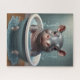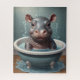 Animais de estimação adoráveis sentados numa banheira, com gotículas de água e bolhas à sua volta. O filhote olha para o espectador com olhos largos e inocentes, e suas pequenas patas estão na borda da banheira. A atmosfera é bonitinha e humorística, fazer ideal para um conjunto de poster.