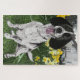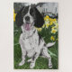 Esta quebra-cabeça de serra mostra o meu retrato de um espanhol de Springer Inglês preto e branco no jardim contra alguns Daffodils amarelos brilhantes. O presente perfeito para um amante de cachorro.