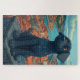 Quebra-cabeça Estátua Negra de Puppy Olhando sobre a cidade