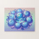 Quebra-cabeça de relaxamento - Design estética do estilo de gibis do Planeta Terra Cósmico Blueberry - Esta fantasia do Pastel Imagem macia é gerada e mostra um monte de amoras-azuis, no meio está o planeta azul Terra. As cores principais são diferentes tons de azul, violeta, tons de rosa claro, lilás e verde.