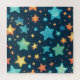 Estrelas brancas amarelas, vermelhas e azuis brilhantes em design de padrão de fundo azul.