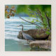 Uma bela cena de um excelente azul de éroon na orla costeira neste incrível quebra-cabeça.