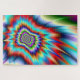 Uma imagem fractal desafiadora opticamente com um design de explosão de cor psicodélica em verde azul vermelho e violeta.