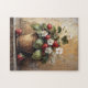 Uma representação artística espantosa de morangos vibrantes e flores delicadas num pote rústico.