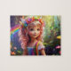 Linda Fada Colorida Fofa e Felpuda com Cores de Arco-íris na Floresta Encantada, Mundo Mágico, Arte Fantástica para meninas. Design Feminino.
