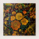 Esta imagem vibrante é uma combinação de uma pintura e arte digital. Ela apresenta flores brilhantes, ouro-amarelas e laranja com texturas intrincadas, semelhantes à web. As flores se assemelham a rosas e outras flores, cercadas por um emaranhado de caules e folhas neonatais em tons de verde, laranja e vermelho. O fundo é escuro, quase negro, que melhora o efeito luminoso das flores e da folhagem. Há também luzes minúsculas, cintilantes, semelhantes a estrelas espalhadas por toda parte, acrescentando uma sensação mágica ou cósmica.
