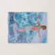 Renderização digital em 3D de uma bela sereia de fantasia num fundo oceânico azul