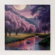 This enchanting fantasy illustration showcases a tranquil river flowing beneath a glowing full moon, surrounded by lush greenery and vibrant flowering trees. The dreamy color palette of purples, pinks, and soft greens creates a magical, calming atmosphere that feels both surreal and serene. With its balanced composition, reflective water, and celestial focus, this artwork is perfect for lovers of fantasy landscapes, moonlit scenes, and imaginative nature-inspired visual art.