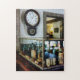 Designs de Susan Savad — se você precisa encontrar um presente para um médico, farmacêutico ou qualquer pessoa no campo da saúde, esta design de uma antiquada loja de drogas com suas interessantes garrafas de remédios e relógio na parede do pêndulo seria uma escolha excelente adicionada a qualquer um desses produtos.