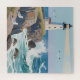 Um ousado farol branco ergue-se alto num penhasco rochoso e irregular, seu poderoso feixe cortando o céu enquanto dramáticas ondas azul-turquesa se chocam violentamente contra as rochas abaixo. Gaivotas brancas pairam graciosamente no céu azul claro e pousam no penhasco em primeiro plano, adicionando vida a esta cena náutica serena, porém poderosa. O estilo de ilustração limpo e vibrante usa azuis frescos, brancos nítidos, tons terrosos de rocha e um horizonte brilhante para capturar a beleza atemporal e a força da orla marítima. Perfeito para os amantes do charme costeiro e da aventura oceânica.