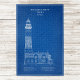 Esta ilustração do Farol Big Sable Point é apresentada no estilo de uma clássica planta azul, transformando a estrutura histórica em algo que parece ao mesmo tempo técnico e atemporal. Contra um rico fundo azul, o trabalho de linha nítido espelha os planos de desenho arquitetônico, destacando as proporções precisas e o caráter estrutural do farol.