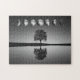 Fases da Lua com Estrelas brilhantes e Árvore Solitária Perto do Lago em Preto e Branco. Uma quebra-cabeça divertida para toda a família.