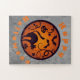 Quebra-cabeça Feliz lanterna do Halloween aranhas e morcegos neg