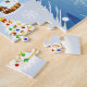 Bonitas paisagens de neve com árvores de Natal, casas, um boneco de neve, uma igreja, e um arco-íris com neve caindo e flocos de neve. Papai Noel único voando sobre uma lua de cheio na noite de Natal.