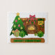 Quebra-cabeça Feliz Natal perto da árvore de Natal de lareira bo