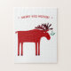 Feliz Kiss Moose Engraçado, vermelho e branco, design de Natal, com um alce ou alce branco com um monte de conhaque amarrado à sua chantageira, esperando um beijo apimentado. Altere ou remova a mensagem a ser personalizada.