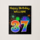 Este design de quebra-cabeça vibrante e divertido apresenta um padrão colorido inspirado em fogos de artifício celebratórios, juntamente com o número "37" tendo um padrão multicolorido de gradiente, num fundo preto colorido. Ele também apresenta um nome personalizado e uma mensagem de evento, como uma saudação de aniversário. Um quebra-cabeça como este pode ser uma maneira divertida de enviar uma mensagem de aniversário para reconhecer o trigésimo sétimo aniversário de alguém. [~Z0000329]