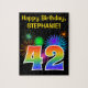Este design de quebra-cabeça vibrante e divertido apresenta um padrão colorido inspirado em fogos de artifício celebratórios, juntamente com o número "42", que apresenta um padrão multicolorido como um gradiente, num fundo preto colorido. Ele também apresenta um nome personalizável e uma mensagem de evento, como uma saudação de aniversário. Um quebra-cabeça como este pode ser uma maneira divertida de enviar uma mensagem de aniversário para celebrar o quarenta segundo aniversário de alguém. [~Z0000329]