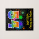 Este design de quebra-cabeça vibrante e divertido apresenta um padrão colorido inspirado em fogos de artifício celebratórios, juntamente com o número "54" com um arco-íris multicolorido como um padrão de gradiente, num fundo preto colorido. Ele também apresenta um nome personalizado e uma mensagem de evento, como uma saudação de aniversário. Um quebra-cabeça como este pode ser uma maneira divertida de enviar uma mensagem de saudação em comemoração dos cinquenta e quatro anos de alguém. [~Z0000329]