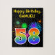 Este design de quebra-cabeça vibrante e divertido apresenta um padrão colorido inspirado em fogos de artifício celebratórios, juntamente com o número "58", tendo um padrão de gradação inspirado no arco-íris multicolor, num fundo de cor preta. Ele também apresenta um nome personalizado e uma mensagem de evento, como uma saudação de aniversário. Um quebra-cabeça como este pode ser uma maneira divertida de enviar uma mensagem de saudação para reconhecer os cinquenta e oito anos de alguém. [~Z0000329]