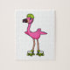 Quebra-cabeça Flamingo como Skater com skates Roller e Capacetes