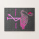 Mosaico, desenho gráfico, de uma ave Tropical Flamingo, exibida em padrões exóticos, Abstrato, de cor rosa-claro, violeta, fuschia, castanho-escuro e preto, contra fundo escuro.