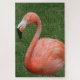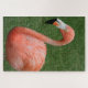 Uma legal foto de um flamingo rosa, perto e pessoal.