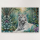 Tigre branco com olhos azuis e stripess de ouro numa selva verde azul da floresta tropical aquática A arte criada por minx267