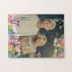 Você pode adicionar seus próprios foto e texto a este produto para personalizá-lo. No lado inferior e no canto direito superior há uma beira de flores bonitas, animados e de borboletas que moldam a foto. As flores são rosa, amarelo e azul com algumas folhas verdes. No centro das flores há umas formas da estrela do verde cor-de-rosa ou amarelo com um teste padrão de ponto. As borboletas são verdes, azul e rosa.