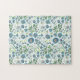Linda e elegante padrão floral de aquarela com flores azuis e verde. Trabalho de arte por Jenn Steffen, Emporium de Jenn.